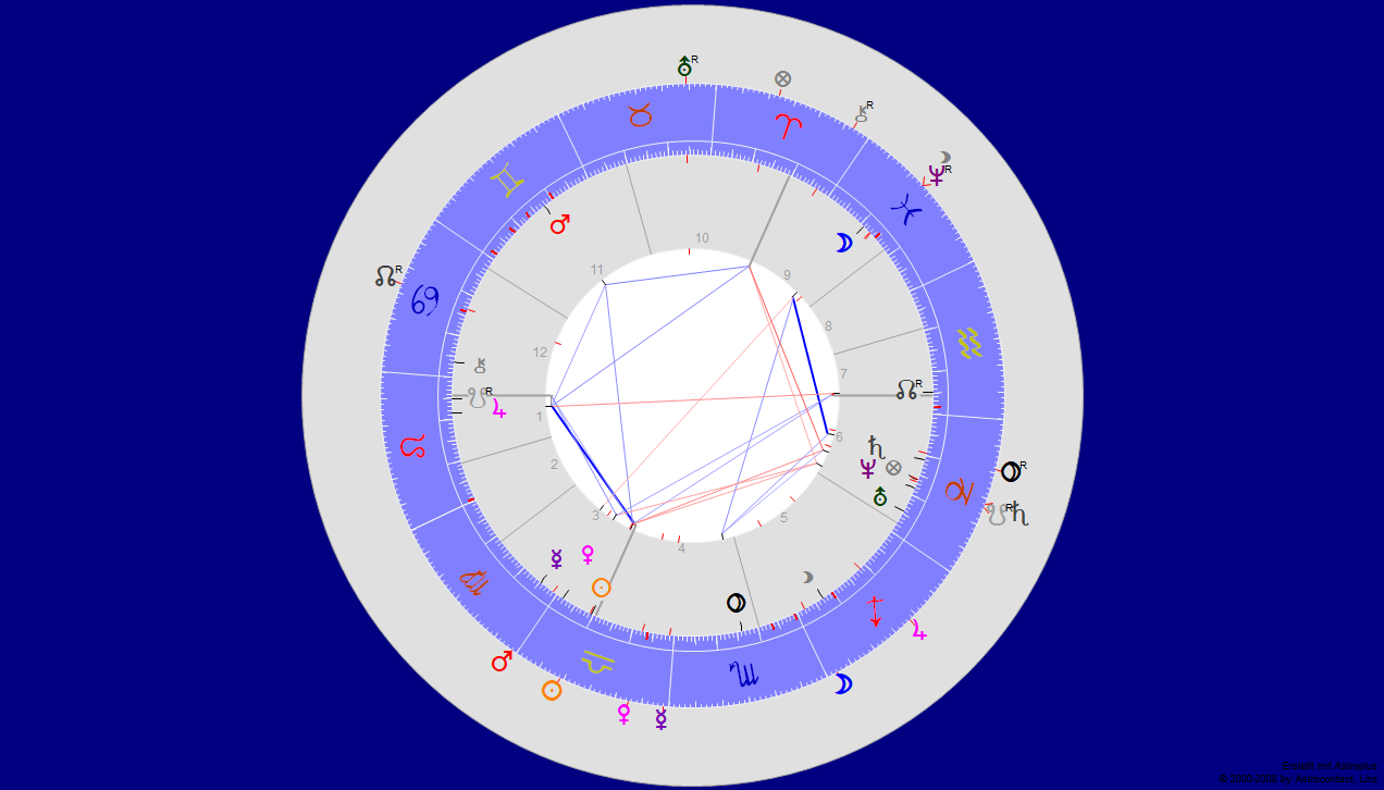Dabei gibt es mit Jupiter in Haus 5 Grund und Anlass zu Optimismus: durch Kreativität kommt tatsächlich was rein, Jupiter bildet ein sattes Trigon zur Spitze Haus 2. Probleme machen natürlich Saturn/Südknoten über dem Glückspunkt in Haus 6 in Steinbock: hier geht´s über die Schwelle des Neubeginns. Aber es sind alte Regeln und Gesetze, die hemmen im Steinbock, Glückspunkt ist wie die Zeltstange des Horoskops. Saturn Südknoten ist wie Saturn ^2.