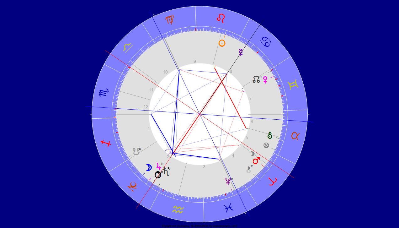 Würde solches passieren, also ein Totalzusammenbruch Ihres Corona-Betrugssystems inklusive Bloßstellung – wie es – wenn die Wahrheit sich durchsetzt, wohl unvermeidlich ist – hätten Sie immer noch eine schizoide Spaltung der Gesellschaft – Sonne/Jupiter/Uranus eingeschlossen in Haus 7 im Krebs, der Heimat – zu verantworten, denn die Jünger Coronas werden wohl für ihr Leben Sektenanhänger bleiben, rational nicht mehr erreichbar.