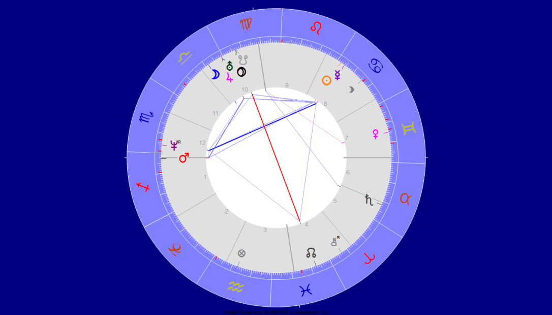 Bemerkenswert im „Landehoroskop“ ist die Pluto/Südknoten Signatur, die wir heuer auch haben, wieder in Erdzeichen im genauen Trigon. Und schon fast witzig: Lilith im Mond-Zeichen Krebs. Uranus/Jupiter in Waage steht – wie ich glaube – eher für eine künstlerische, denn technische Meisterleistung. Neptun am AC im Haus und Zeichen des 12. Hauses ist die Täuschung des Kollektivs.