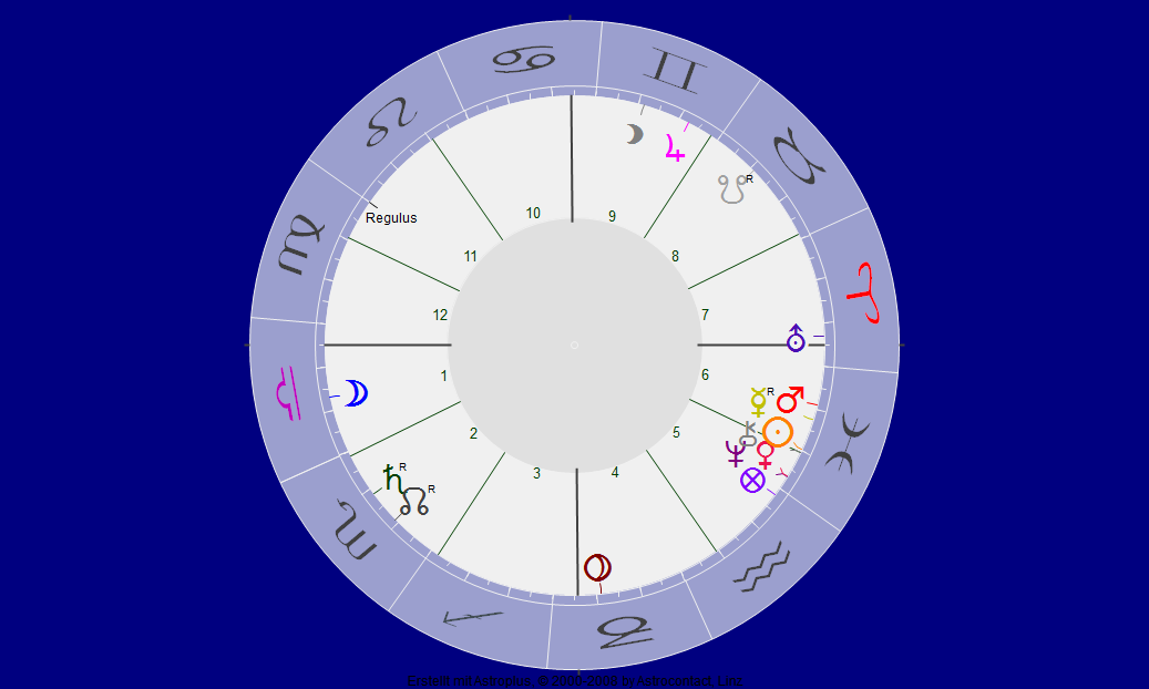 Zur Weltbildauflösung gehört auch der Vertrauensbruch in seiner allernächsten Umgebung. Die Kammerdiener-Affäre. Wird er erpresst? Unwahrscheinlich – dann müßte der Druck aus dem 7. Haus kommen … immerhin, im gut gewählten Stundenbild tut er das: Uranus steht in Opposition, eine Revolution u.U. aus dem Haus 7!