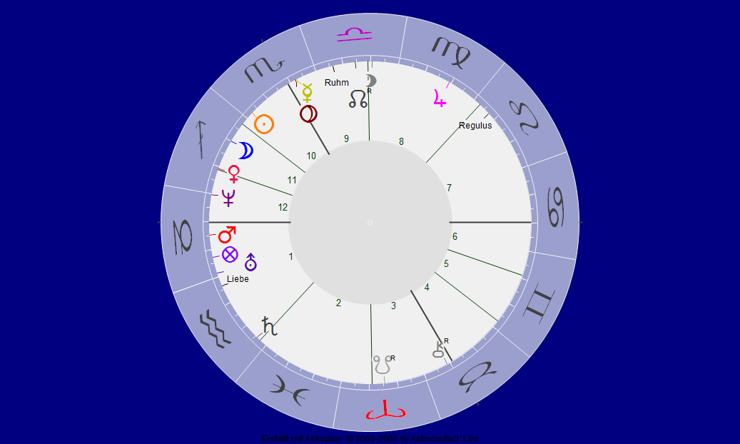 Selbstredend dürfen wir hier astrologisch keine medizinischen Ratschäge geben! Die einzige Aussage in dieser Richtung ist: astrologisch gesehen erhöhtes Risiko bei Mars laufend Opposition Mars Radix. Paracelsus – Skorpion geboren – hat ja gesagt, Medizin ohne Astrologie sei Pfuscherei (er drückt sich gern deutlich aus … ). Solche Behauptungen können und dürfen wir nicht aufstellen. Worum es geht, ist astrologisch inspirierte Salutogenese – Gesundheits-Pflege: die meisten mit Mars Opposition Mars laufend bekommen keinen Schlaganfall (oder jedenfalls nichts, was oberflächlich bemerkbar wäre). Aber die mit Neigung dazu, sollten sich alle 2 Jahre den Transit merken, dick im Kalender anstreichen, stressfreien Urlaub buchen und viel frische Luft atmen. Und wenn das nicht möglich ist, dann wenigstens wissen, dass man/frau es im Prinzip in der Hand hat, den Kreislauf fröhlich laufen zu lassen und vor allem zu vermeiden, sich wegen irgendeiner Rechthaberei gehen zu lassen … lieber dabeibleiben gilt besonders natürlich für Widder-Aszendenten …
