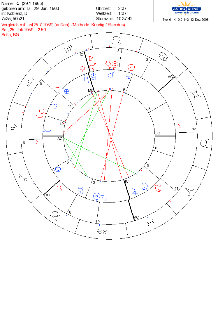 das würde ich dann gerne machen. Meine Daten 2 9. Januar 1 9 6 3 um 02:37 in Koblenz und er 2 5 Juli 1 9 5 9 ca 02:50 in der Nacht, Sofia. Er trennt sich derzeit von seiner Frau, sucht viel Kontakt mit mir und hat außer freundschaftliche Zuneigung nix für mich, was meine Intuition aber irgendwie anders wahrnimmt. Will mir aber auch nichts vormachen. Aber ist ein wirklich wertvoller Mensch. Nur platzt mir der Kragen, wenn er sagt, ich werde bestimmt wie Du alleine bleiben. Hallo! Was bin ich denn für den bzw. kann der bzw. wird der sich noch öffnen und ist eine leidenschaftliche Beziehung überhaupt möglich? Mir ist schon klar, dass ich Geduld haben müsste in seinem Fall, aber wenn der nix fühlt und sieht zu mir, muss ich es lassen. Deshalb wäre es mir wichtig zu wissen, was in der nächsten Zeit an Dynamik und Anziehung, Interesse und Bewegung von ihm ansteht, weil ich kann und werde auch nichts tun. Diese Rolle gefällt mir natürlich auch nicht, aber ich würde es tun, wenn es Sinn machen würde. Gibt es einen eindeutigen Zeitpunkt, wo eine Beziehung fix wäre bzw. „nur“ intim?