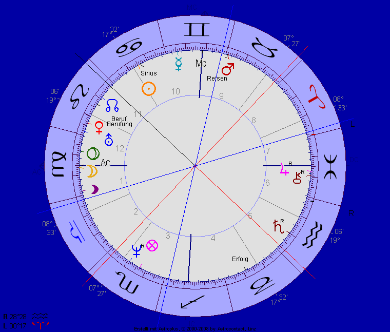 Sein Mars, also seine Männlichkeit, steht jedoch in der Jungfrau, verstärkt durch Pluto. Da neigt er zur Analyse und zur Selbstquälerei. Nicht einfach für einen Löwe-Mann. Selbstquälerei wegen Pluto. Durch die starke Besetzung des Jungfrau-Hauses ist er sicherheitsorientiert und vorsichtig. Du hingegen bist mutig und extravagant. Natürlich ziehen sich Gegensätze an. Doch brauchst Du auch einen mutigen Mann (wegen Löwe-Mars).
