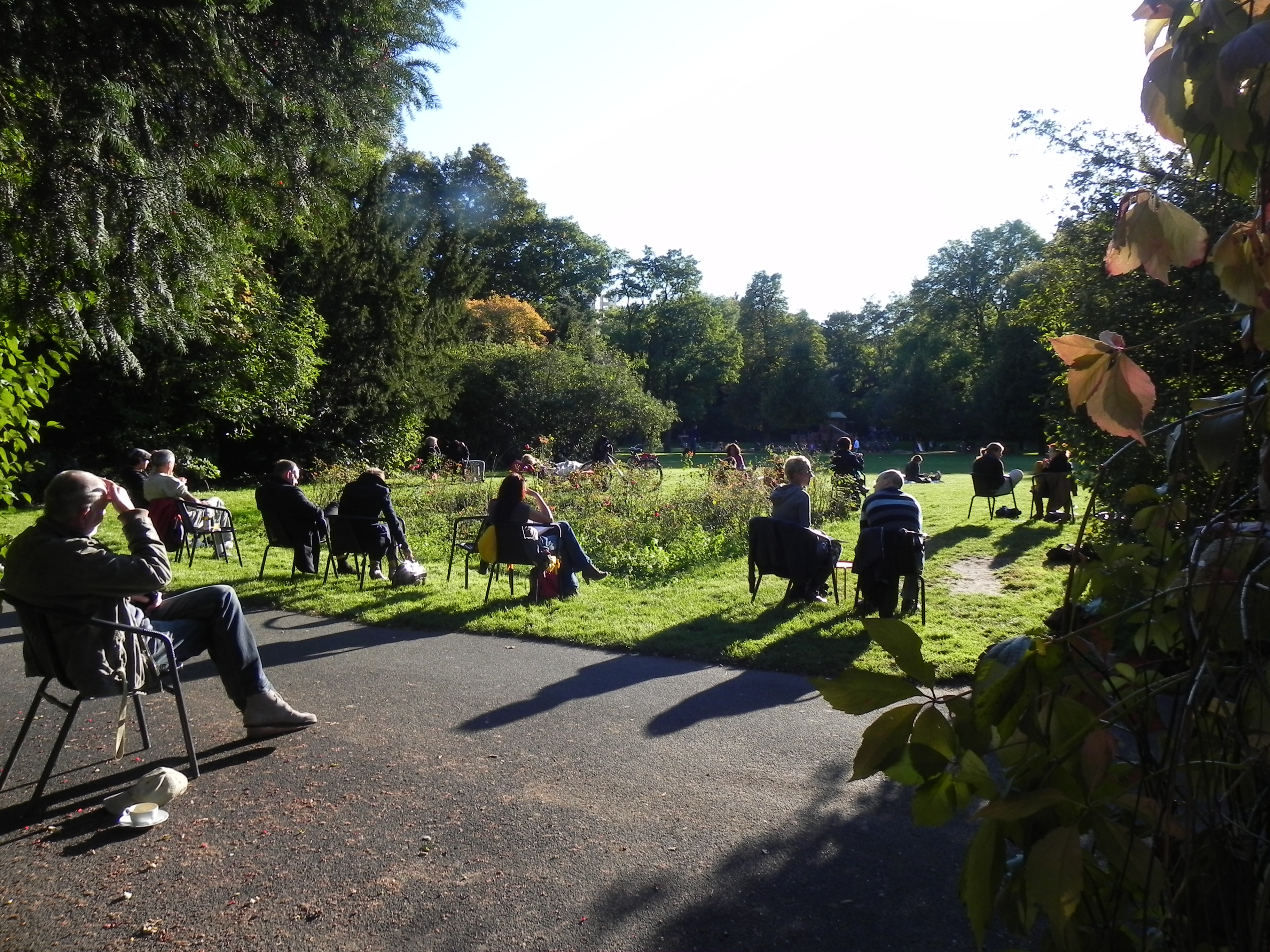 Nachtrag 21.09.2016: Es gibt wieder Rosen in der Rosenau, wie ein Ei haben sie ein Mäuerchen gebaut und dort Rosen gepflanzt, die allerdings ungepflegt sind, weil die SÖR das noch nicht auf dem Schirm zu haben scheint – ungeliebte, erzwungene Rosen (Presse stieg ein, und so weiter) … Der Job des Gärtners ist heute ja auch nur mit Gehörschutz und manchmal sogar Atemmaske zu machen. Und leider riechen die Neuen Rosen nicht, das Wesentliche, der Duft: ist weg. Damit hätten wir doch verloren, das Wesentliche nämlich – das, was dem Namen gemäß das Rosenau-Wesen ausmacht – wobei man diesen Park treffend als größte Outdoorkathedrale der Stadt bezeichnen kann – bis hinein in die mystische Akustik. Vielleicht sollten wir einfach selbst Duftsorten setzen? Oder ist das schon ein Aufruf zur Ordnungswidrigkeit? In Fürth, der Nachbarstadt, hat man einen Rosengarten mit bestimmt 12 verschiedenen Duftsorten – wunderbar gepflegt – warum geht das in Nürnberg nicht?