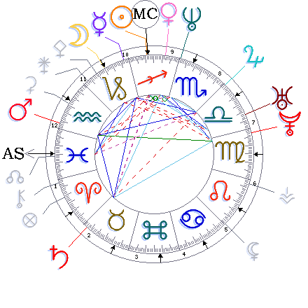 Auch der vermeindliche Verlierer Anand hat einen Zauberaspekt mit der Venus/Venus Konjunktion, dem Neptun/Mond-Kontakt und der Sonnen-Symmetrie. Vielleicht gründet er eine Schule (Haus 9) … ?