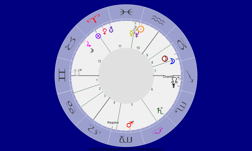 Ich habe das Horoskop auf den Mond-Transit für Christian Wulffs Schütze Mond heute früh eingestellt – ein Mond/Mond Transit sensibilisiert, läßt tiefer empfinden – und wünsche ihm vor allem für die nächsten paar Tage Durchhaltevermögen. Wenn er es schafft, im Amt zu bleiben, bis Jupiter Mitte des Jahres in die Zwillinge geht, werden wir noch dankbar sein, ihn zu haben: vielleicht als Vermittler zwischen Deutschland und Griechenland, einen, der hilft, dort das kaputte Image wieder zu reparieren: Angela Merkel kann das nicht mehr. Skeptisch stimmt mich der Südknoten in Haus 10 = damit ist Wulff eigentlich Privatier – und kann nicht immer in die Verwirklichung in Haus 10 = Autorität streben, sondern muß – je älter, je mehr – runter in Haus 4.