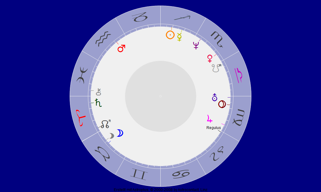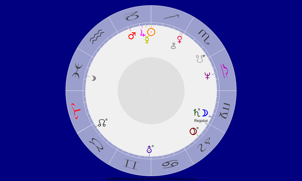 wer zweifelt, dass es Neptun ist, der diesen doppelt Stier-Geborenen mit der Milliardärskonstellation Jupiter/Pluto in Löwe auch wirklich zu einem Milliardär gemacht hat? Und sein Krebs-Kumpel Harrison Ford? Innen sehen Sie das Horoskop von George Lucas. In der Mitte – und darauf ist meine Aspektscheibe eingestellt – das nahezu exakte Neptun/Neptun Quadrat zwischen Erst- und (vorläufiger) Letzt-Premiere von Star-Wars. Lucas selbst hat Neptun in Waage Spitze Haus 6 = sein Arbeitswerkzeug.